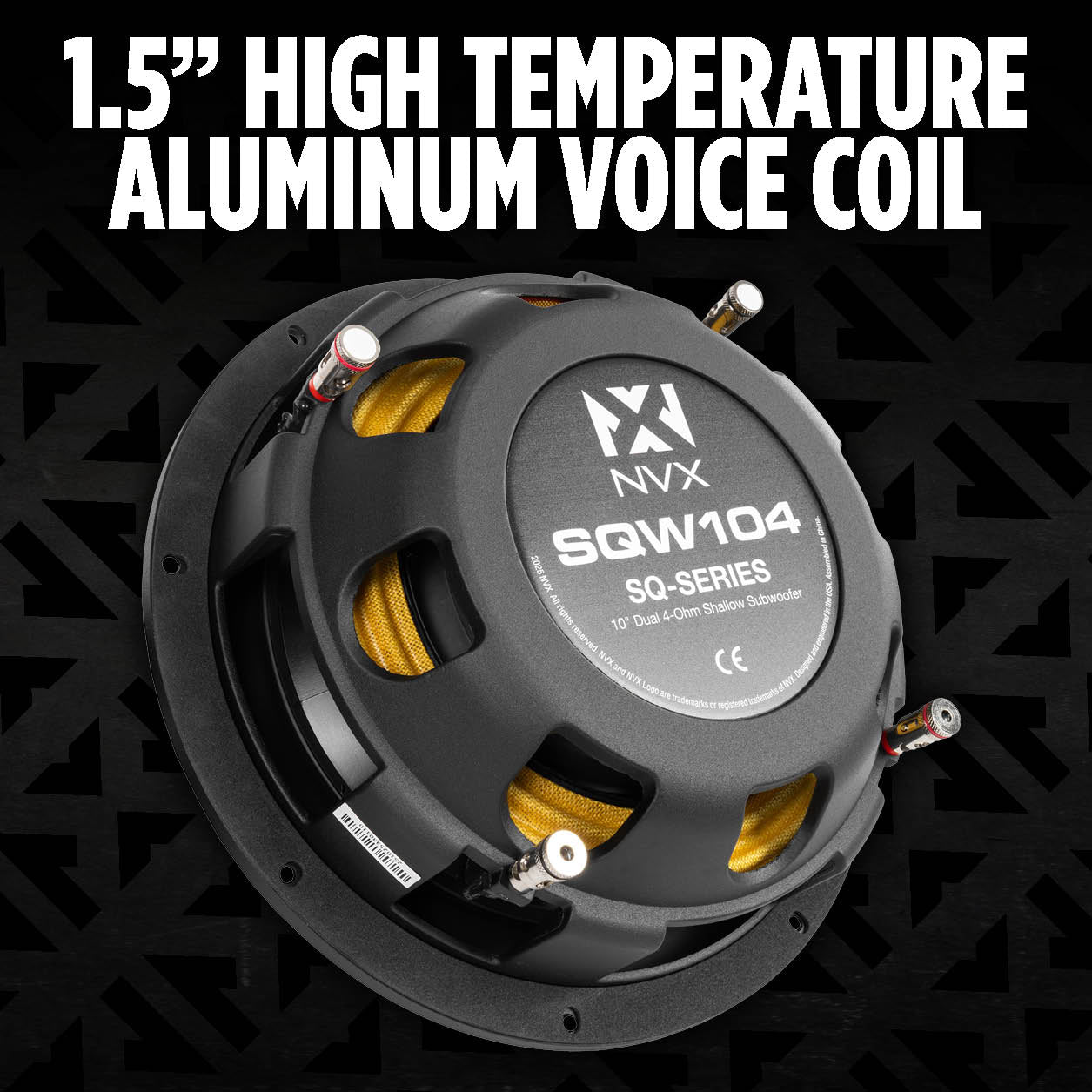 SQW104 1200W Peak (600W RMS) SQ-Series Shallow-Mount 10" Dual 4-Ohm Subwoofer