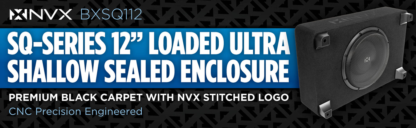 BXSQ112 1200W Peak (600W RMS) Sealed 2-Ohm Loaded Enclosure with Single 12" SQ-Series Shallow-Mount Subwoofer