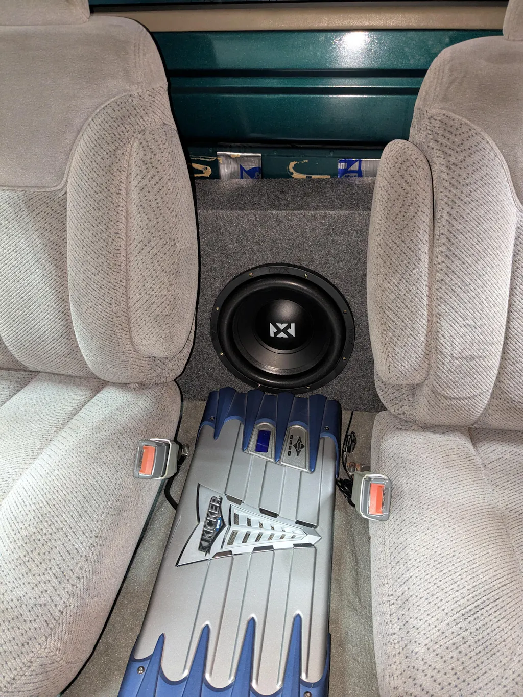 I installed this in a Bbox sealed box with the NVX VAD10001 amp in a Rav4. I got both voice coils wired and parallel so the amp is seeing a 2 ohm load, so the amp is capable of giving it 700 Watts. Got the gain at about half, crossover set to 120 hz, no bass boost.