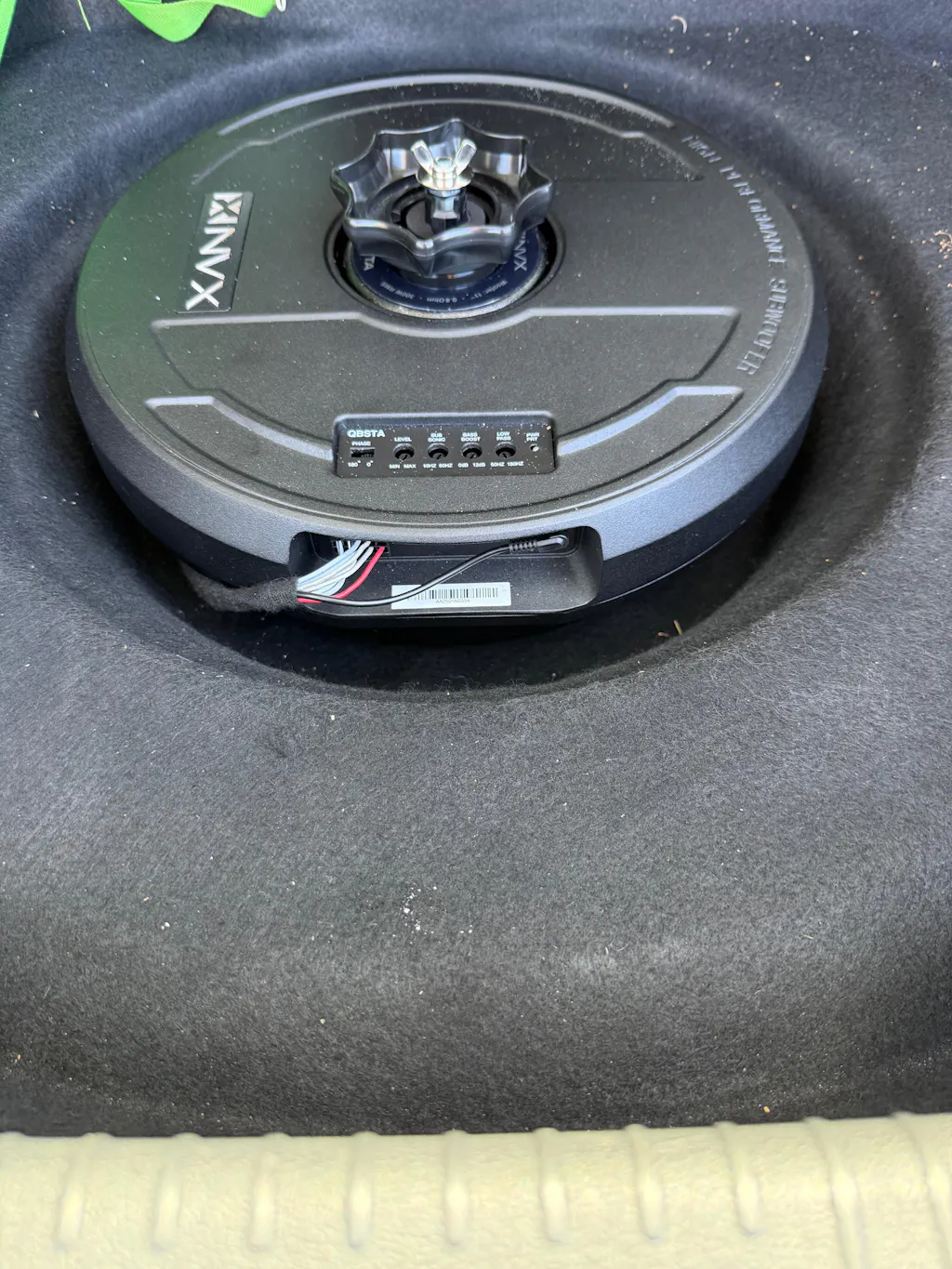QBSTA 900W Peak (300W RMS) 11" Quick Bass Spare Tire Amplified Subwoofer System with Remote Bass Level Control
